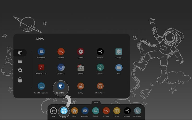 a.Click on Apps and click on screen share to get the promethean screen share code